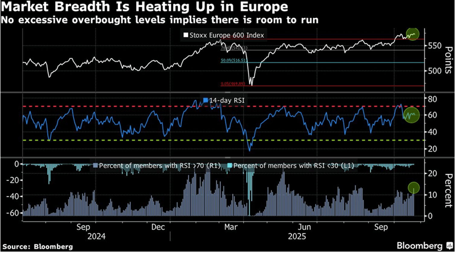 “While the US market has reached very expensive levels, Europe remains relatively cheap, which should provide a cushion to some extent.” Europe could also receive a lifeline from supportive economic and earnings data. Business activity in the euro area has just unexpectedly hit the highest level since May 2024 as outperformance by Germany helped offset weakness in France.