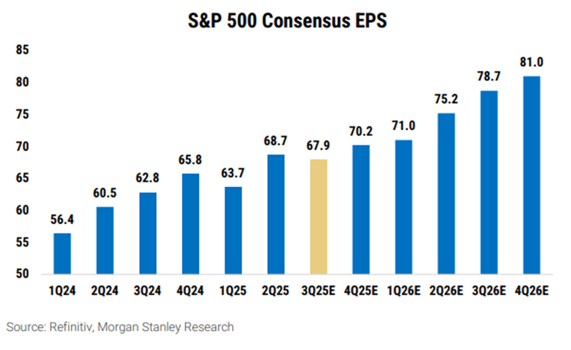 Equity analysts are expected to broaden their earnings revisions to more stocks toward the end of the year and into 2026, according to Morgan Stanley strategists. “We have high conviction in our rolling recovery thesis”.