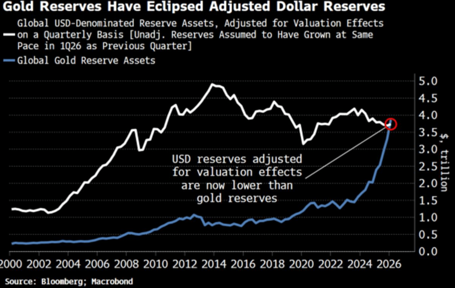 3. Gold reserves having eclipsed central bank holdings of dollar assets.