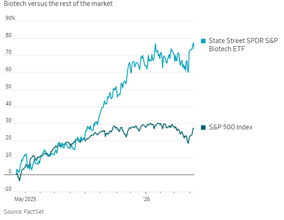 5. Biotech beat the broader market by roughly 20 percentage points in 2025.