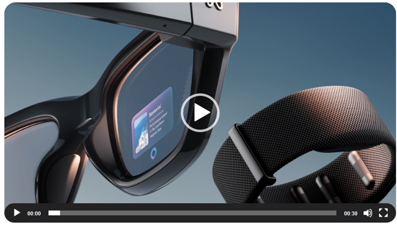 Below: Each pair of AI glasses comes with its own Meta Neural Band, an EMG wristband that translates the signals created by your muscles (like subtle finger movements) into commands for your glasses.
