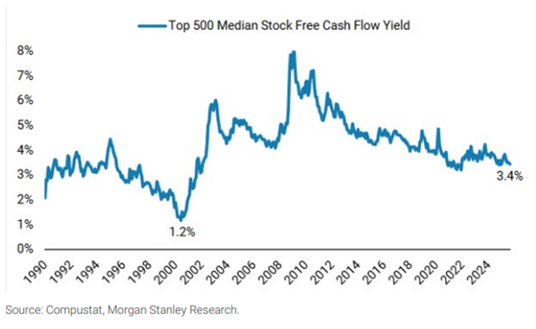 Free cash flow yield for the median large cap stock is materially higher than it was in 1999.