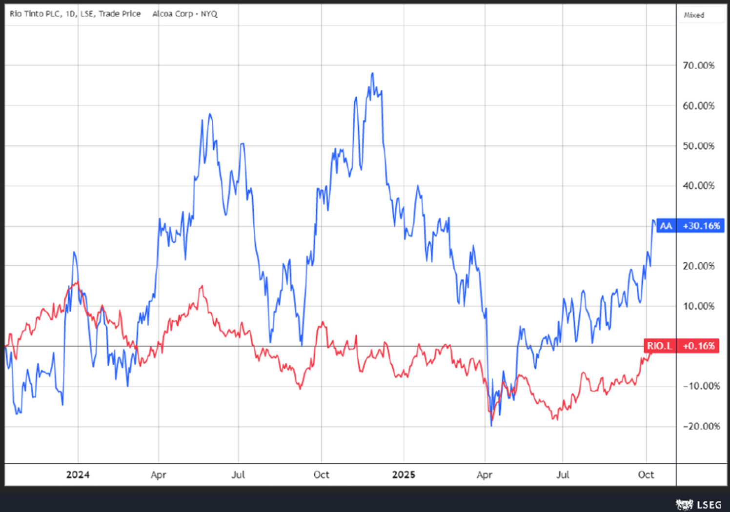 Rio Tinto's business is diversified across several commodities, with aluminum (including bauxite and alumina) making up approximately 25-27% of its revenue. Rio Tinto was the third-largest producer of aluminum globally in 2024.