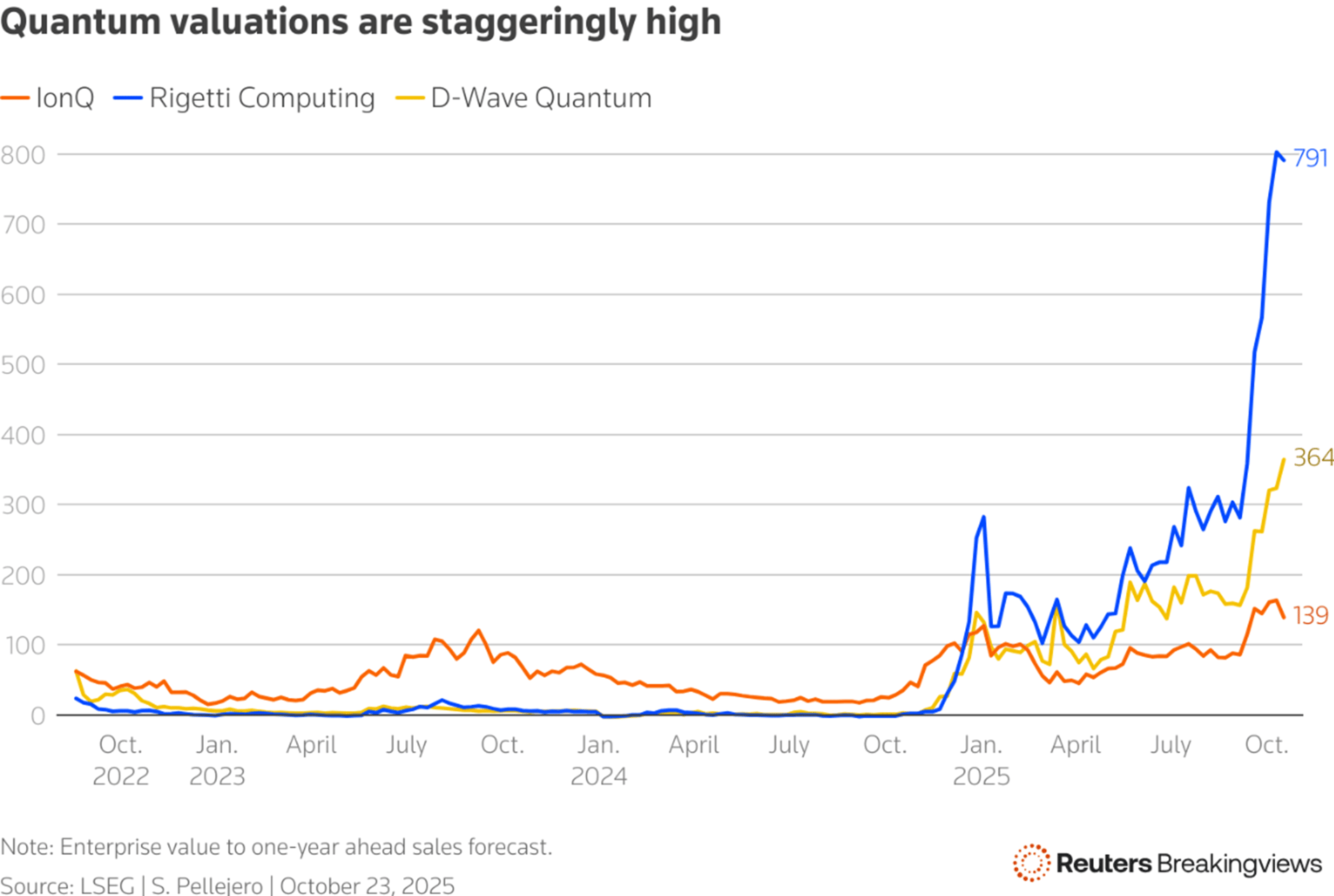 The clutch of startups including IonQ, Rigetti and D-Wave have collectively lost over $1.4 billion between 2020 and 2024, with more expected this year. The trio’s shares entered October up more than 1,200% since 2022, only to decline between 23% and 39% since October 15, overshadowed by advances from Alphabet’s quantum chip, Willow.