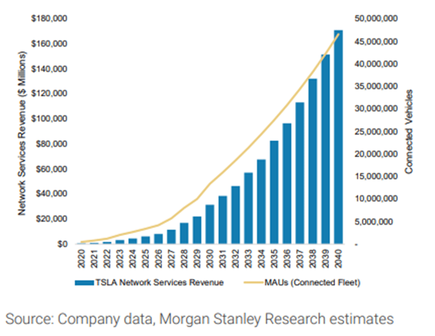 Below: Estimated TSLA network services revenue through 2040