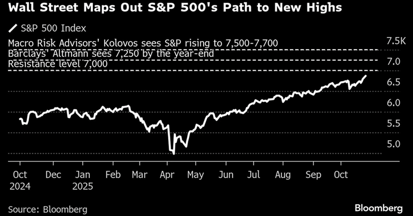 1. Equity bulls seem to agree that the S&P 500 will surge past the 7,000 level.