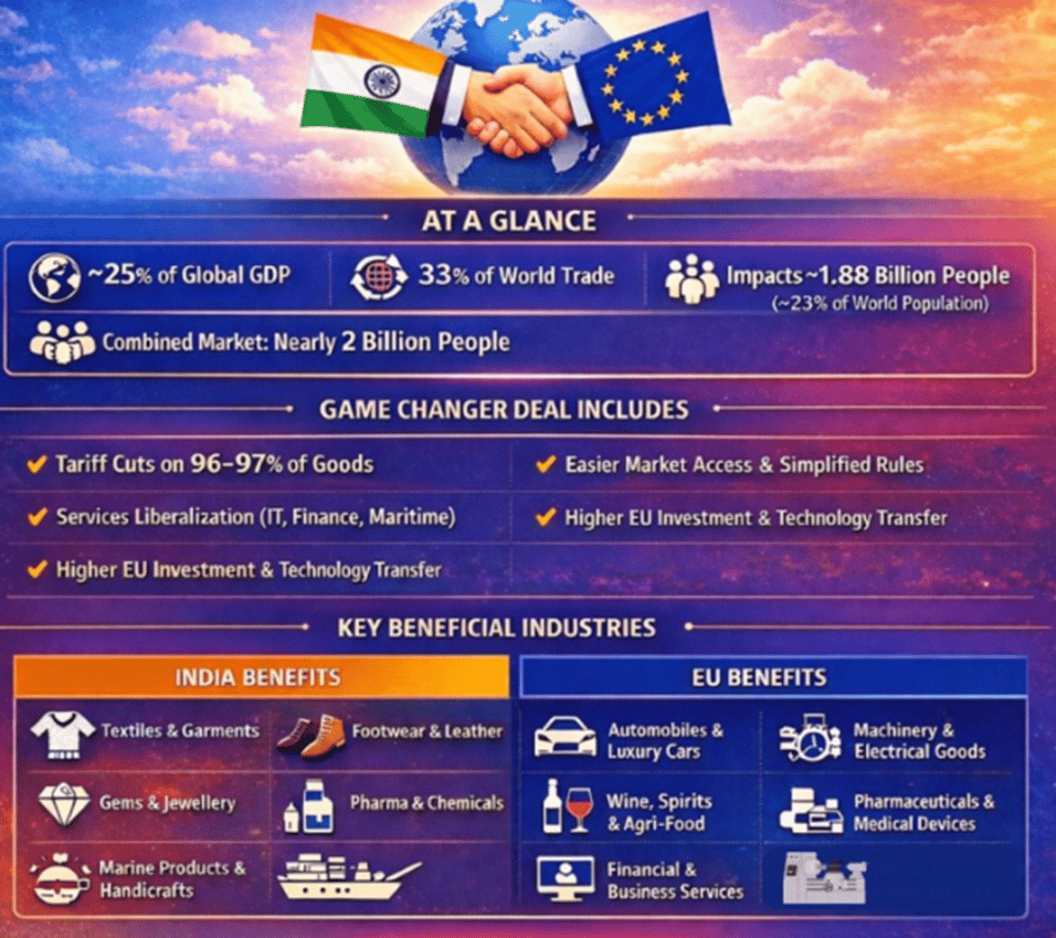 The long-awaited EU–India FTA could boost bilateral trade by 41–65%, raise real incomes on both sides, & reduce reliance on riskier markets - linking economies that represent 21.1% of global GDP.