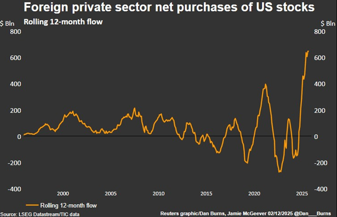 In some ways, these inflows from abroad are unsurprising. The whole world has wanted in on the U.S.-led AI boom this year.