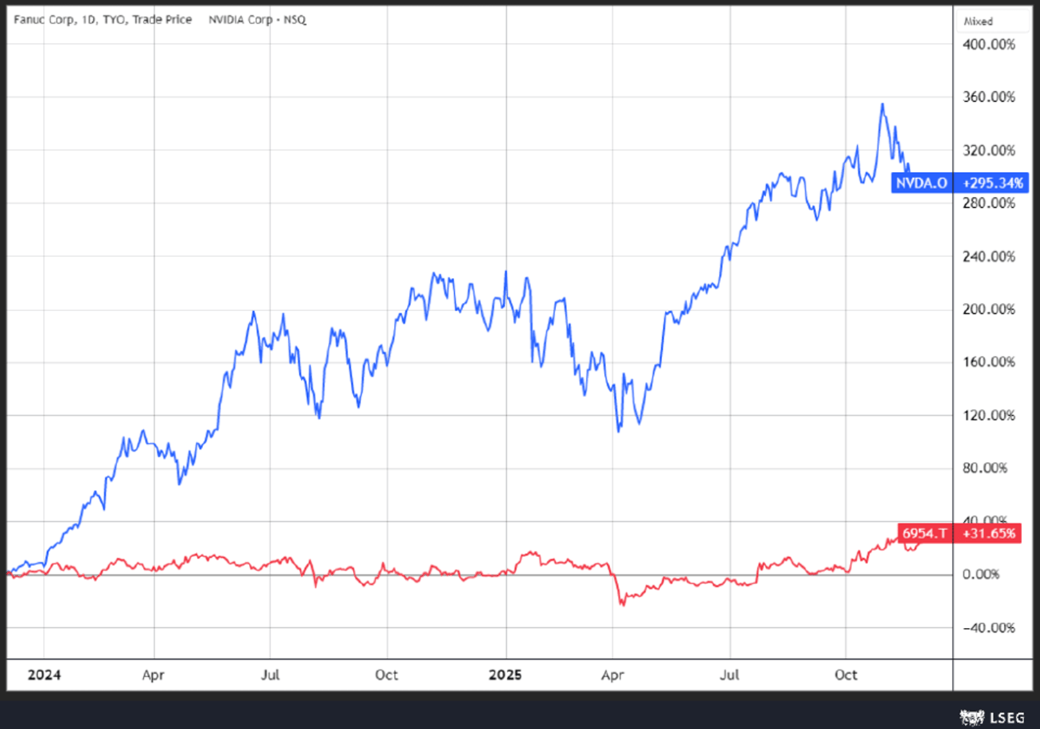 Below: Fanuc versus Nvidia. The “humanoid” trade is on.