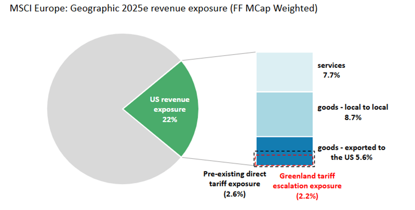 Only c. 2.2% of MSCI Europe's revenue could be directly exposed to new Greenland-related tariffs.