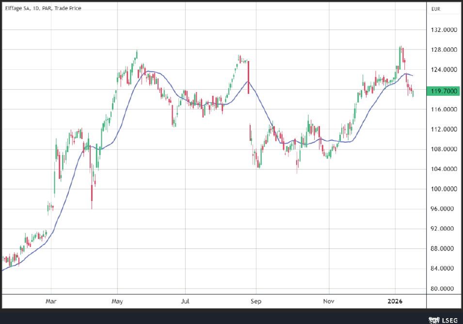 Eiffage's Contracting business (~€21.2bn 2025e revs / ~€942m EBIT) continues to offer an attractive combination of visible revenue growth on German infrstructure stimulus and a solid backlog (resilient flow orders + large contract ramping up into 2026/27/28e).