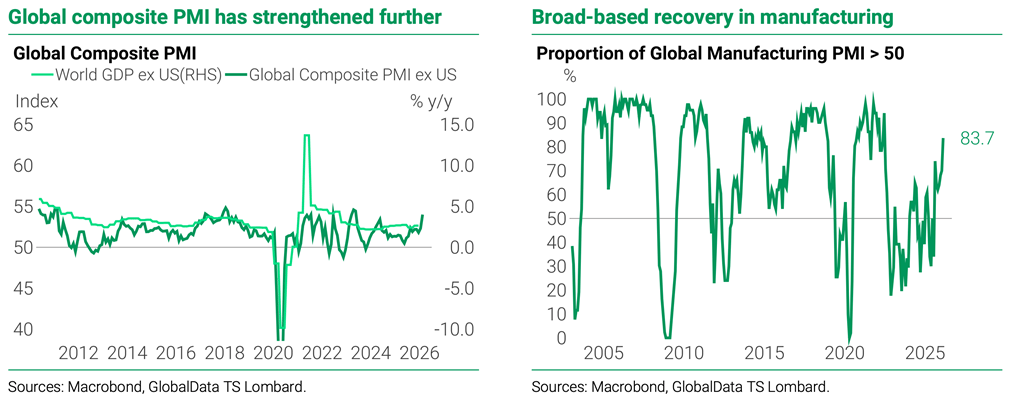 āGlobal PMIs continued to strengthen in February, with the share of global manufacturing PMIs in expansion territory now at 85%, and the global composite PMI is at its strongest in almost two years."