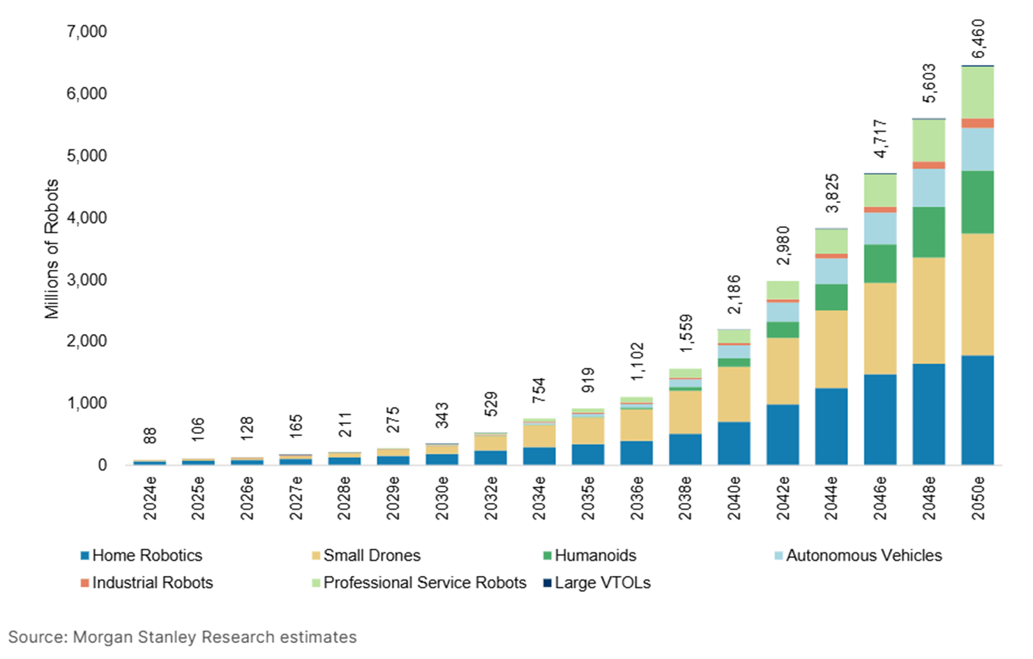 Below: Global robotics forecast in millions of robots.