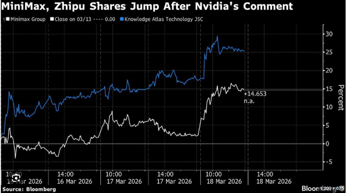 3. Chinese AI stocks got a lift after Jensen Huang said that OpenClaw is “definitely the next ChatGPT”.