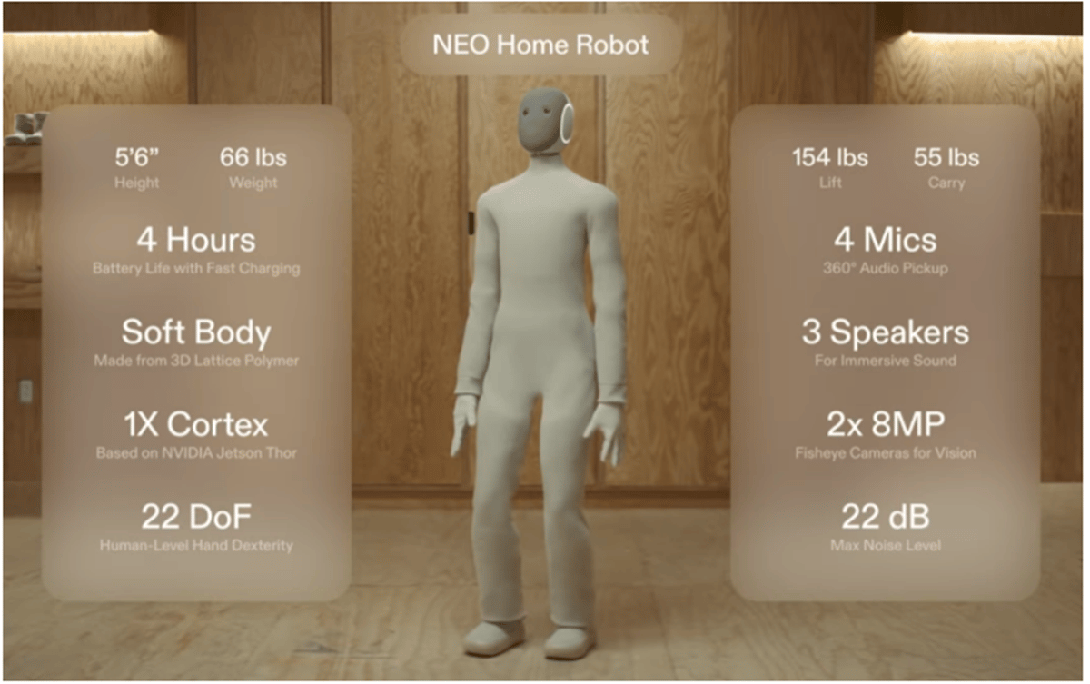 1X Technologies just made its NEO humanoid household robot available for pre-order on its website (www.1x.tech) for a subscription price of $499/month or a purchase price of $20,000 for a fully refundable deposit of $200. US deliveries are expected in 2026.