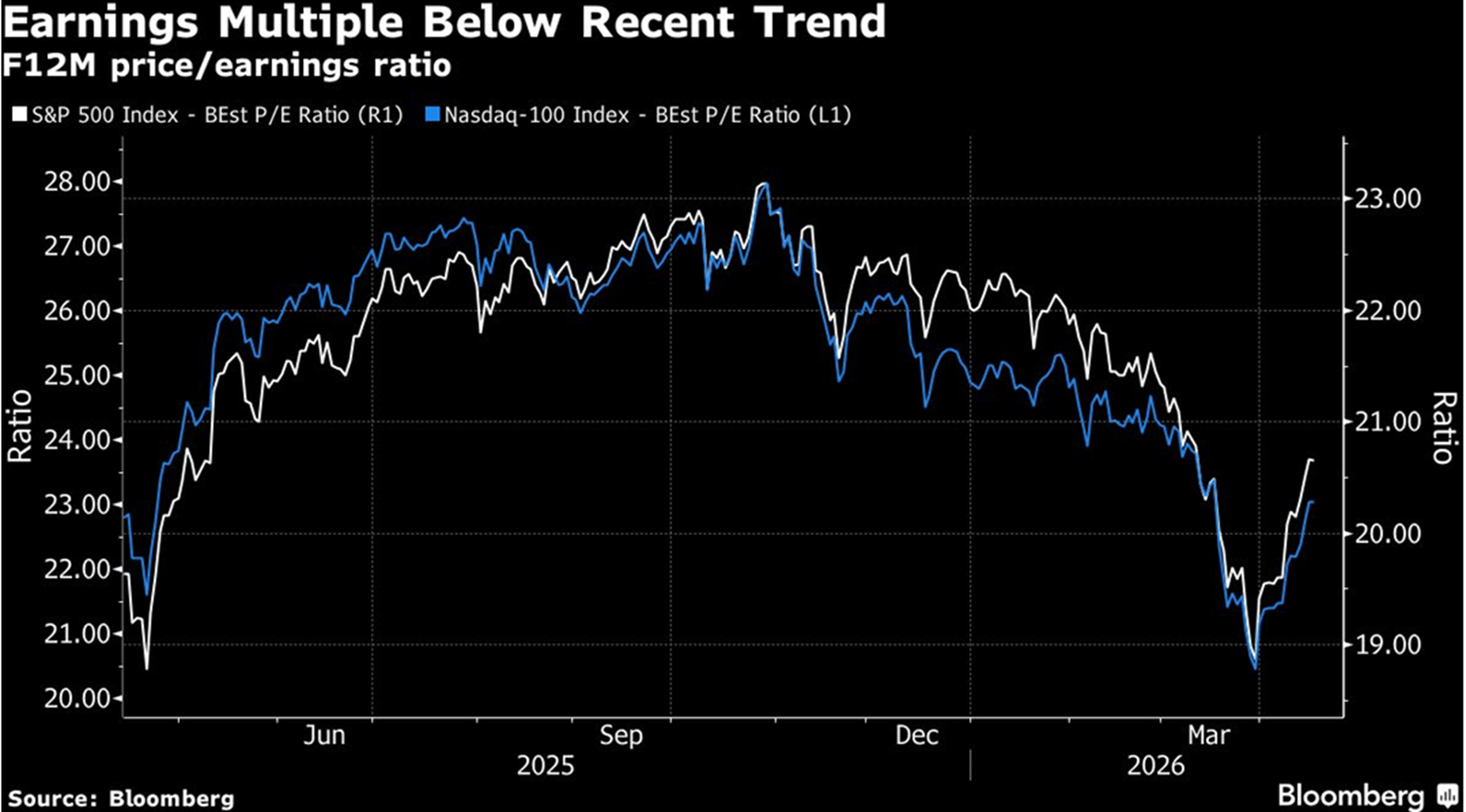 And while the S&P 500 hit a new record, valuation ratios are still well below the levels seen in late 2025, indicating that earnings forecasts are moving up faster than stock prices. The current 12-month forward blended PE multiple for the S&P 500 of about 21 times compares to a peak of 23 times in November.