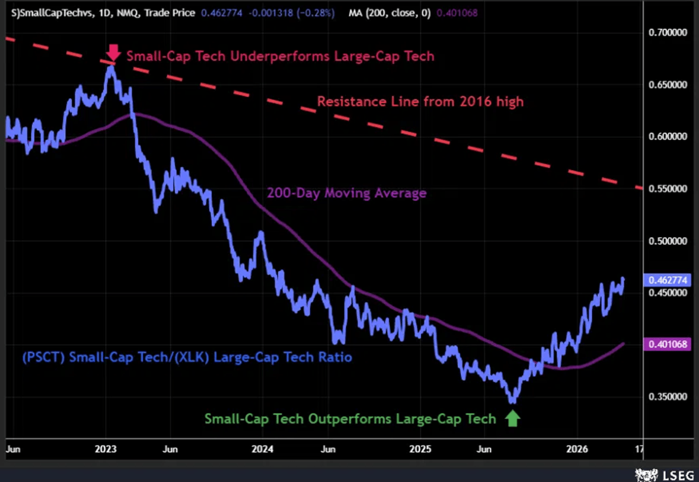As a result, smallācap tech is gaining ground on its largeācap counterpart at a pace not seen since the ETF launched roughly 15 years ago.