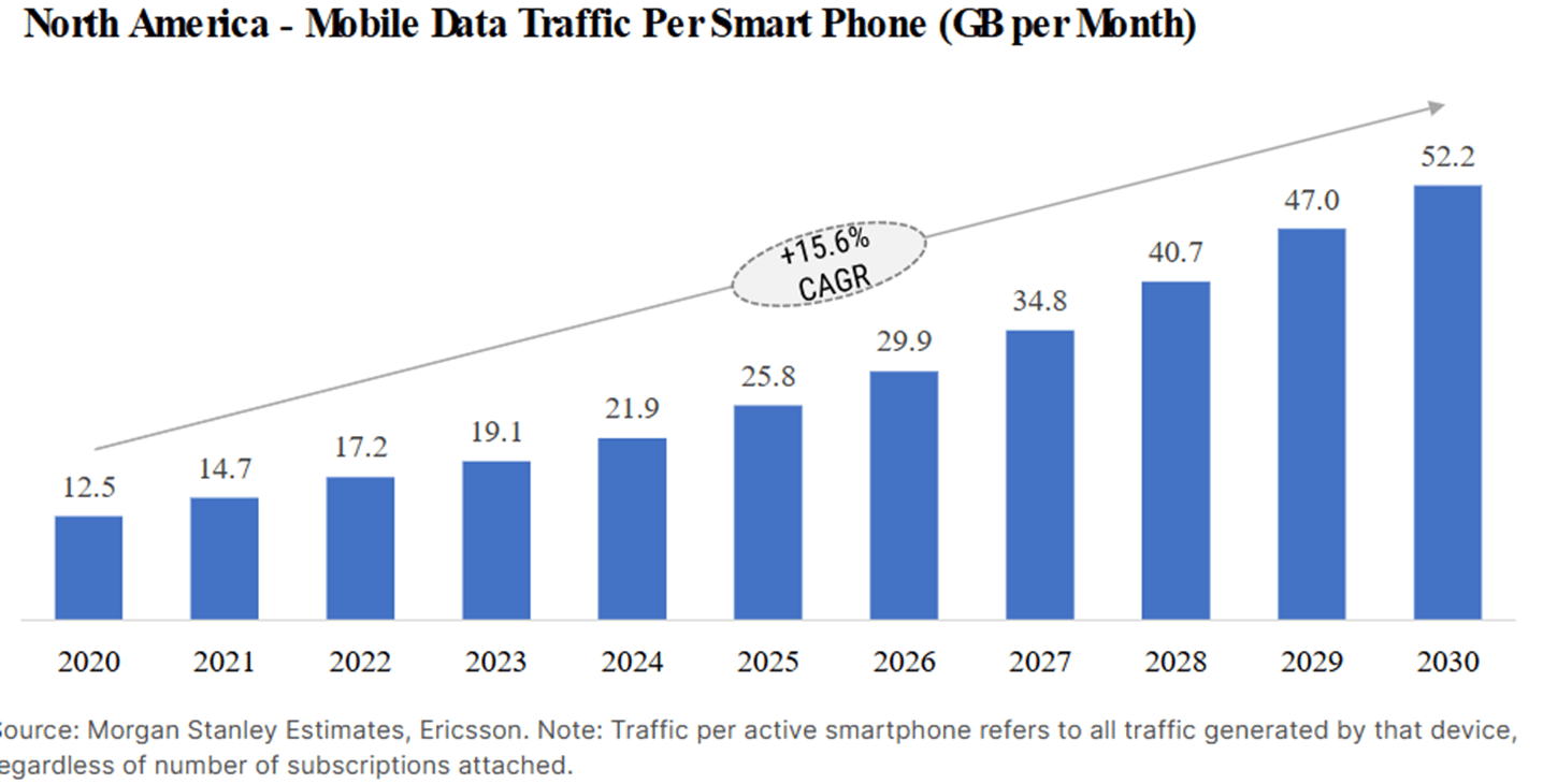 Low-latency mobile connectivity requires significant 5G coverage and we can imagine increasing levels of AI related video delivery in-vehicle to passenger or passengers that are no longer required to focus on the road. This is the kind of bandwidth intensive mobile use cases that could significantly ramp mobile data traffic.